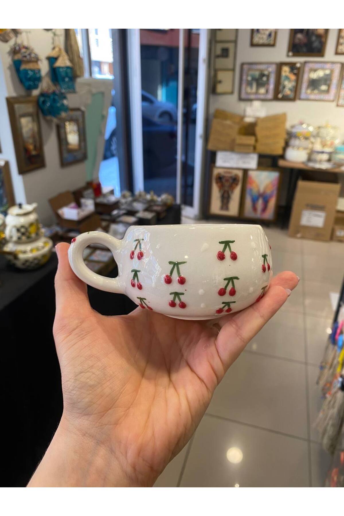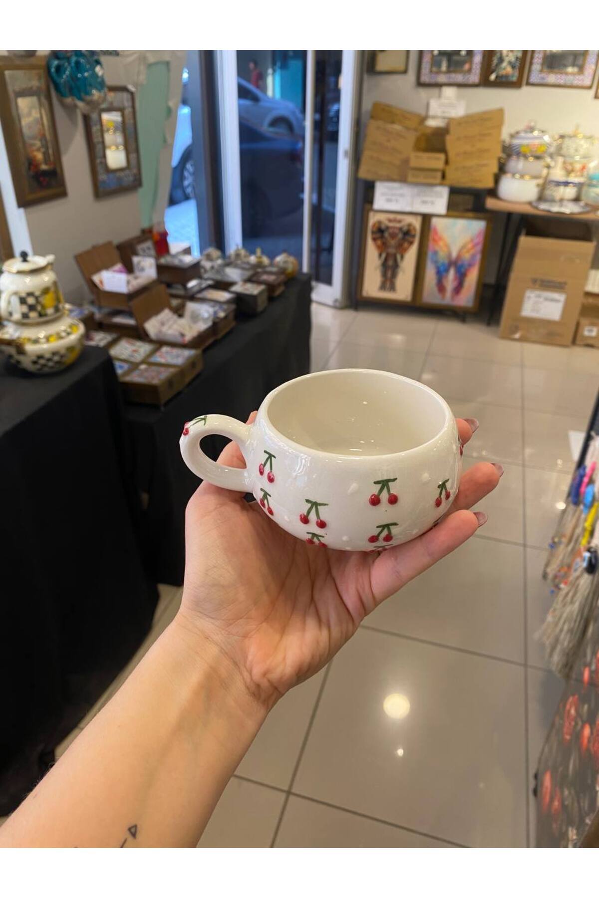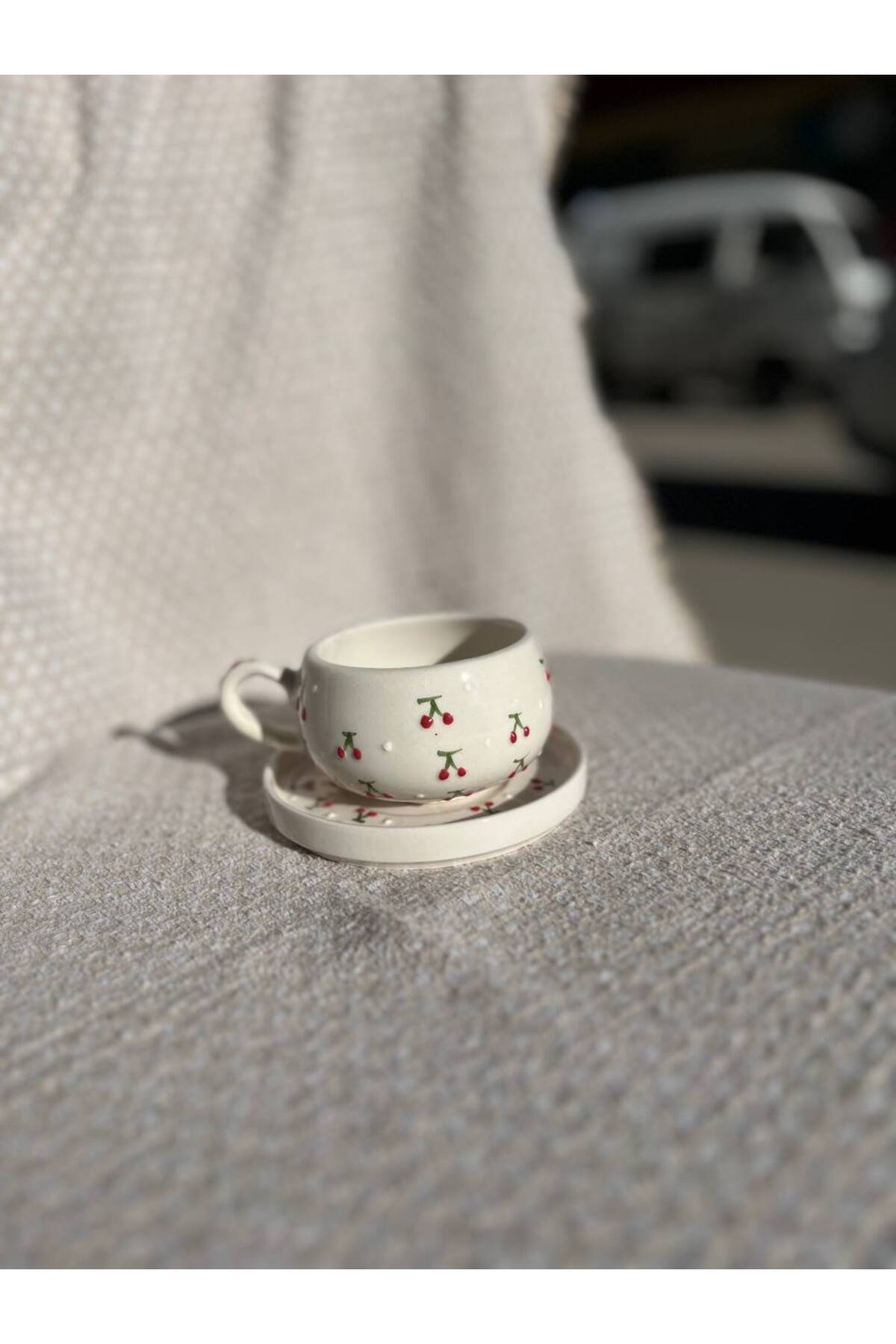 كوب قهوة سيراميك يتميز كوب السيراميك المطرز يدويًا بنمط الكرز بتصميم فني أنيق، ليمنحك تجربة فريدة أثناء شرب القهوة التركية أو الشاي مع لمسة جمالية أصيلة, احصل عليه من متجر cupcoffee
