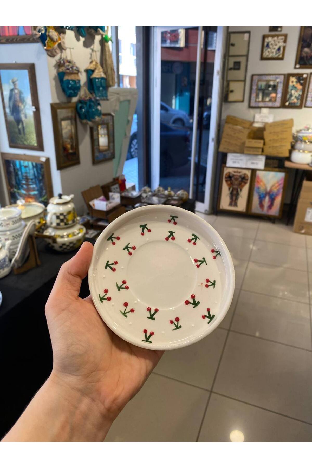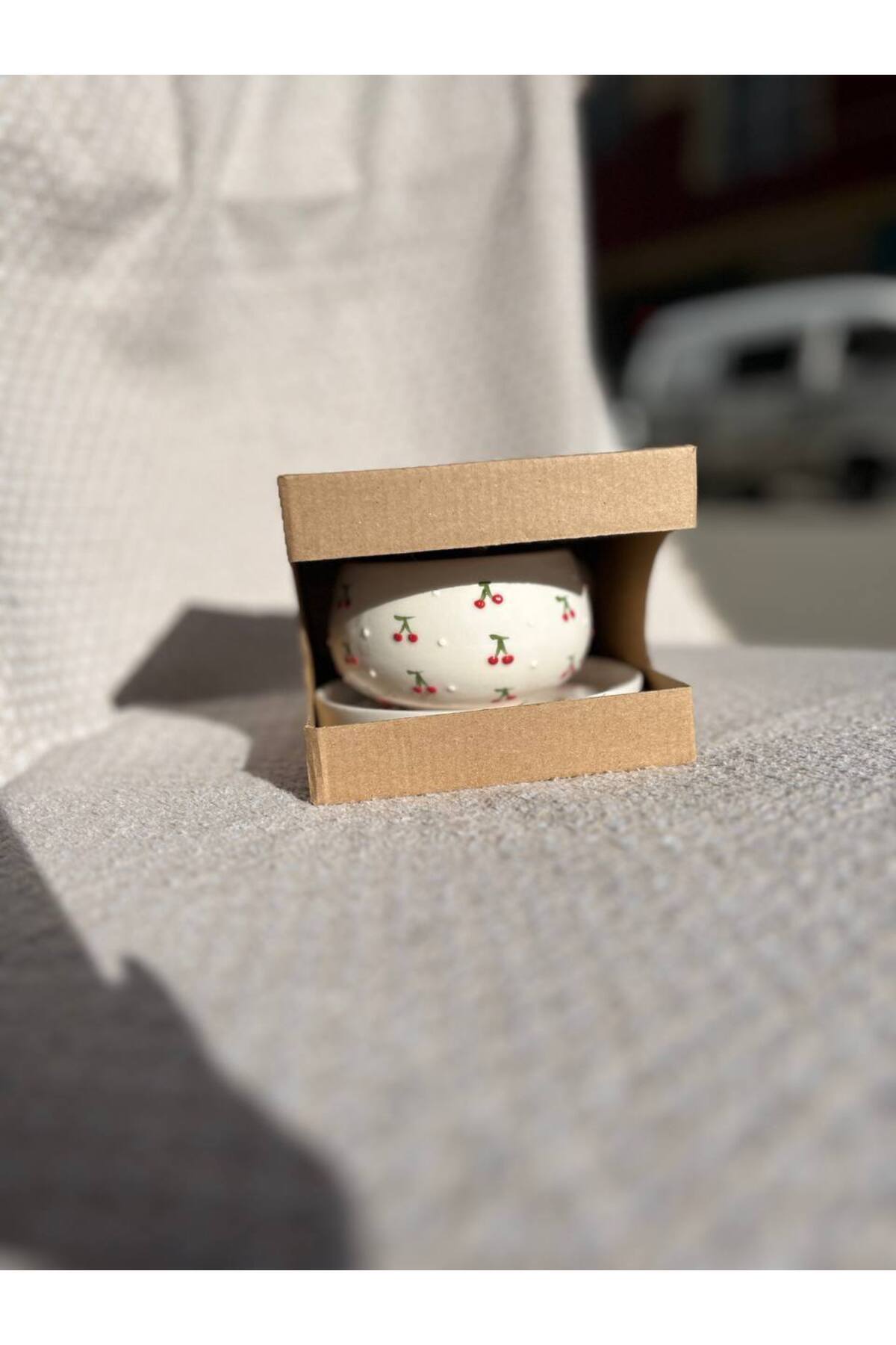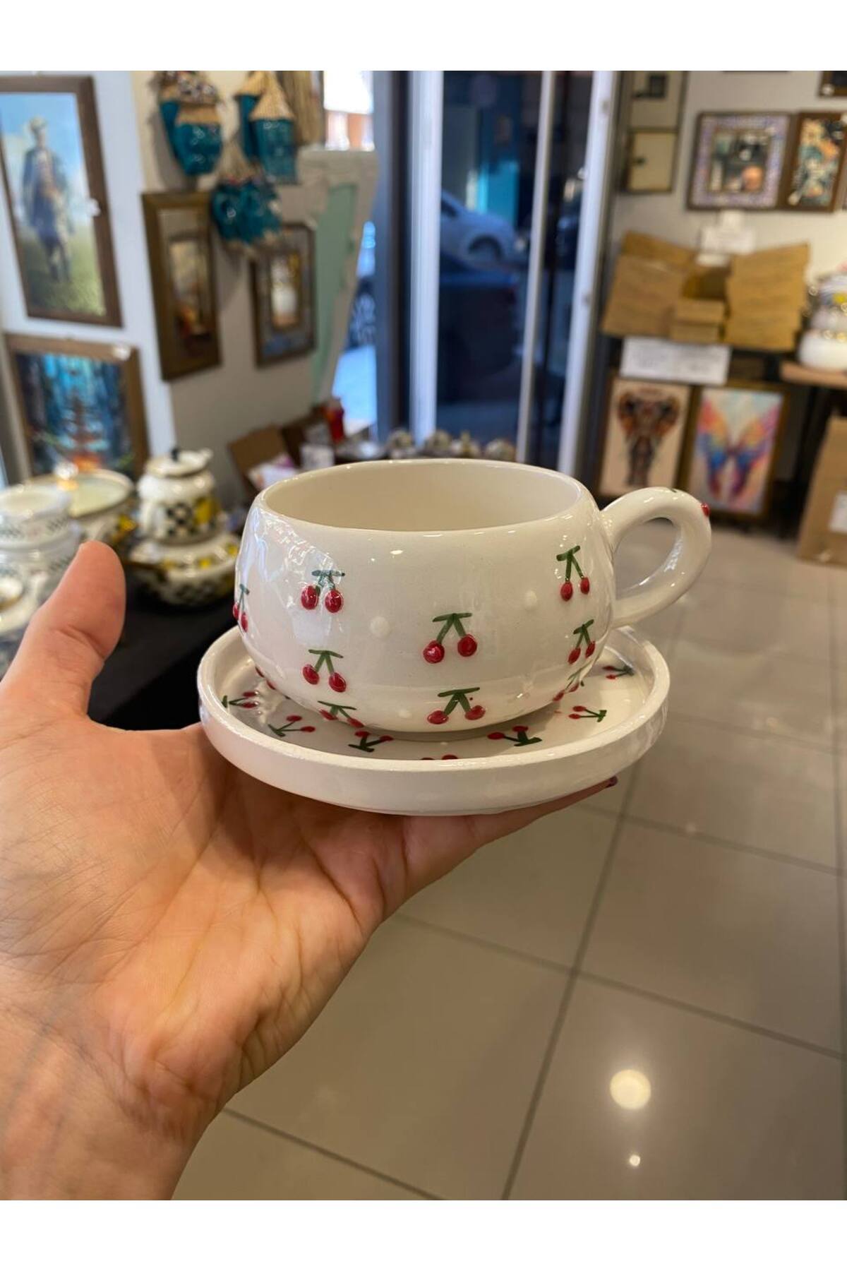 كوب قهوة سيراميك يتميز كوب السيراميك المطرز يدويًا بنمط الكرز بتصميم فني أنيق، ليمنحك تجربة فريدة أثناء شرب القهوة التركية أو الشاي مع لمسة جمالية أصيلة, احصل عليه من متجر cupcoffee