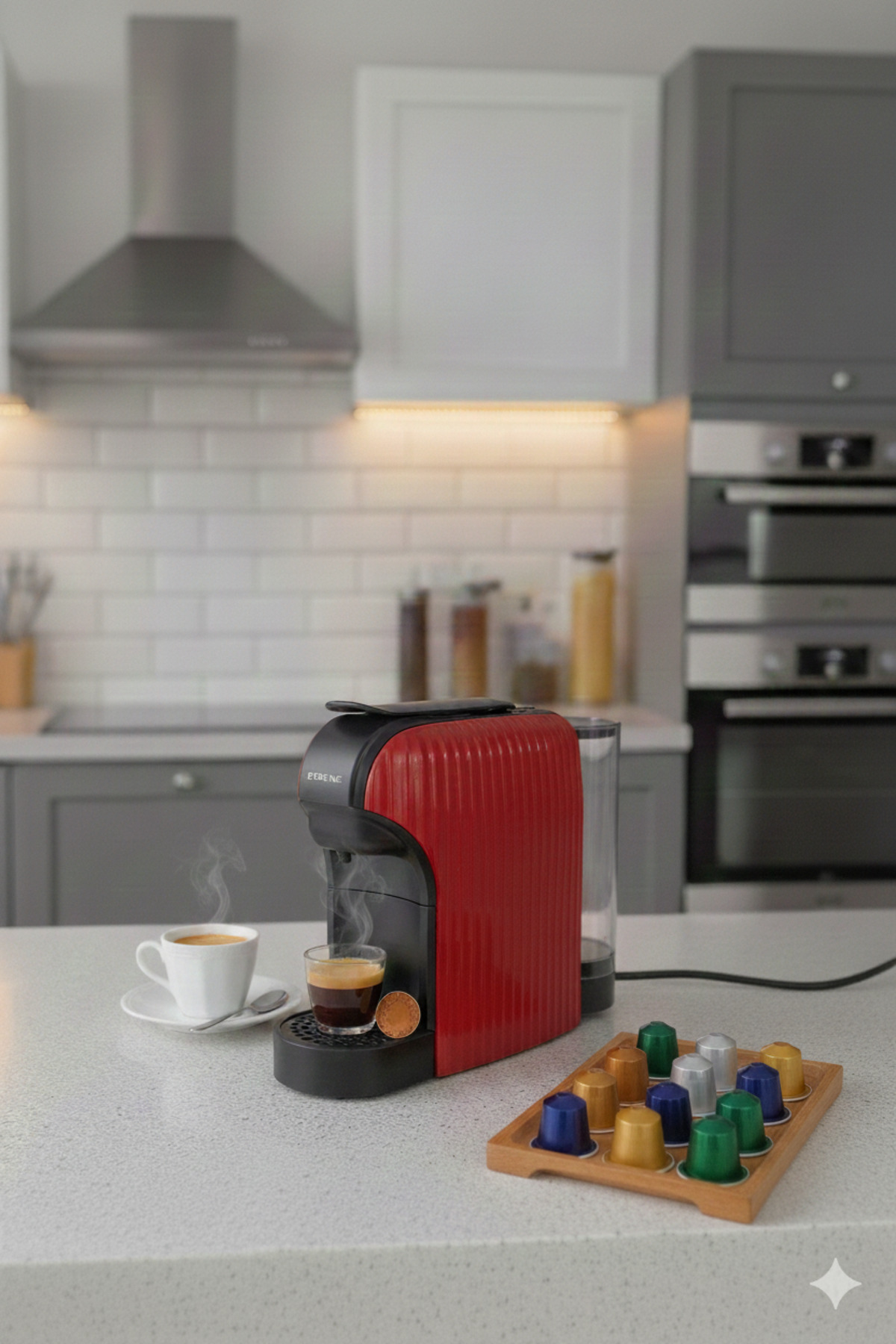 - ماكينة اسبريسو كبسولات تصميم أنيق يضيف لمسة عصرية لمطبخك.