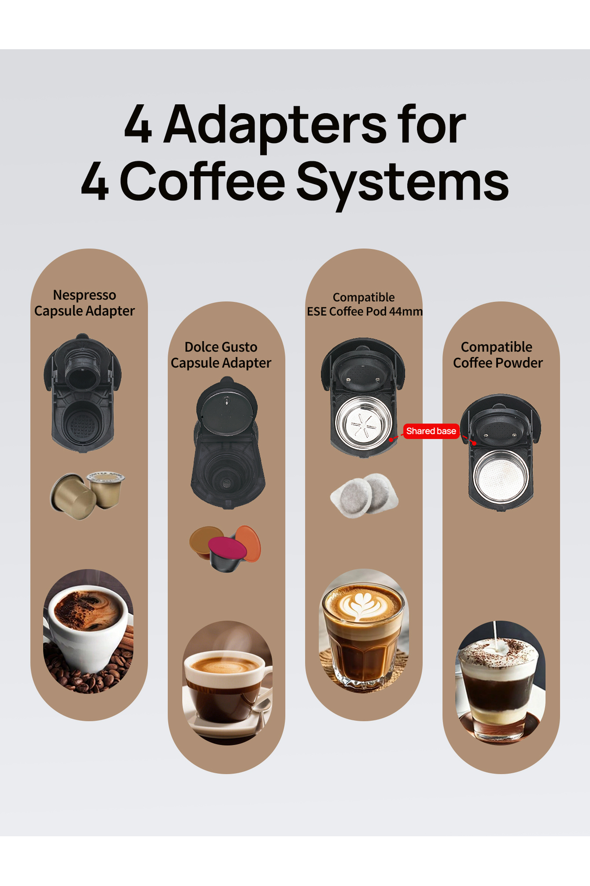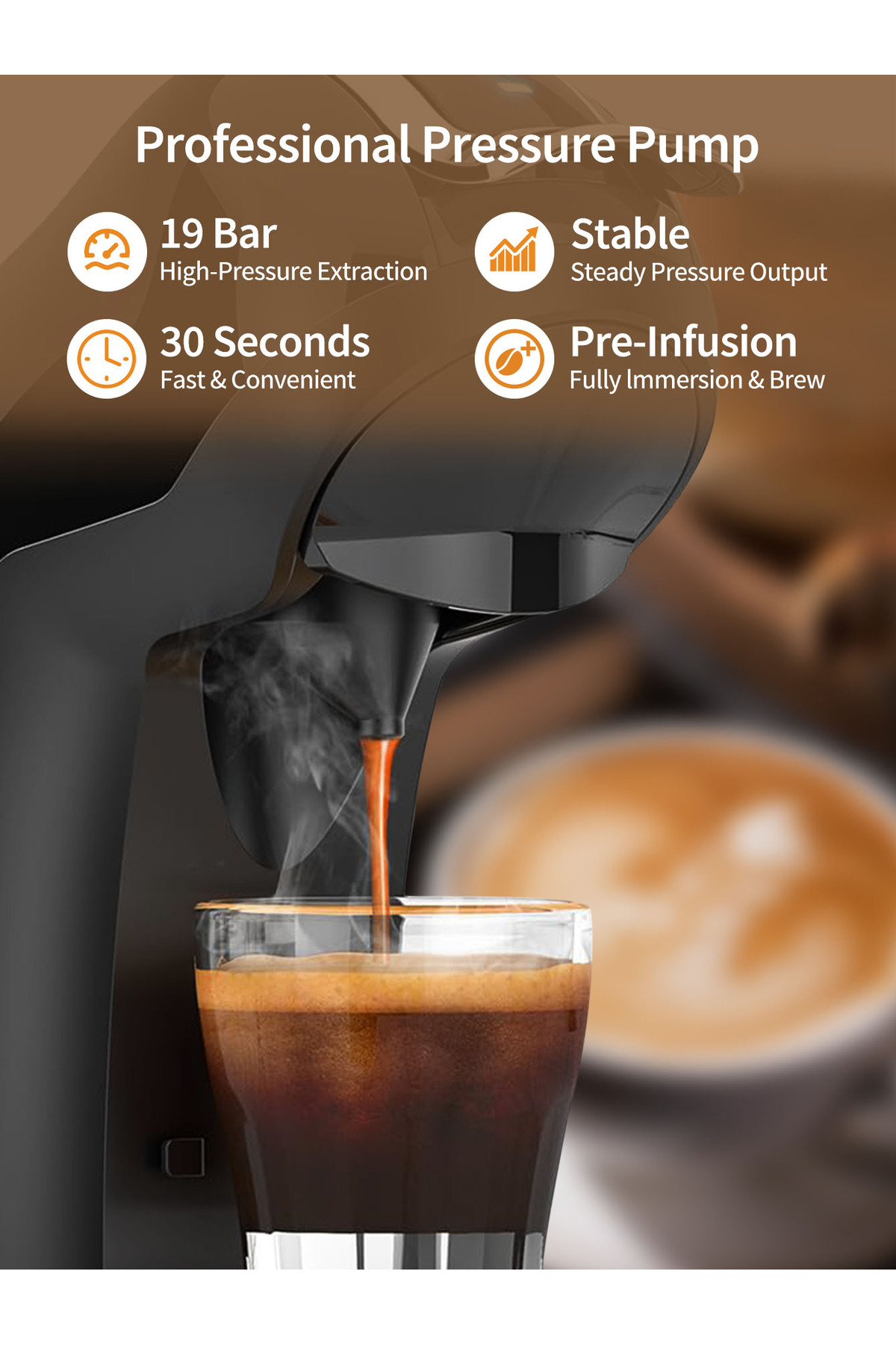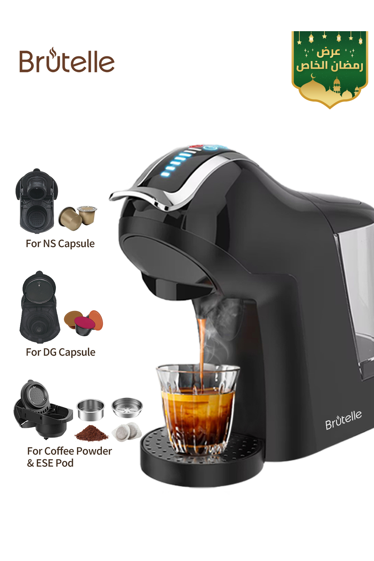 ماكينة قهوة بالكبسولات 4 في 1، ماكينة إسبريسو، ضغط 19 بار، ماكينة تحضير القهوة الباردة والساخنة بالك