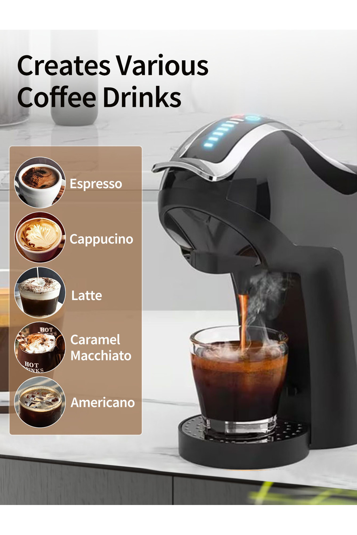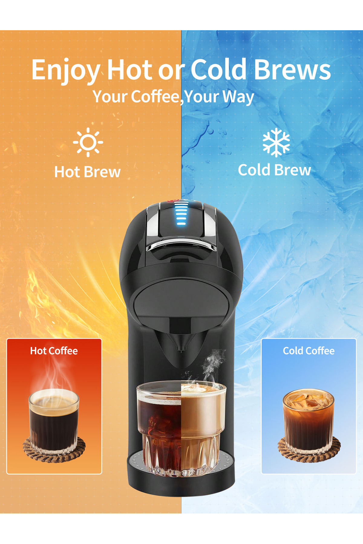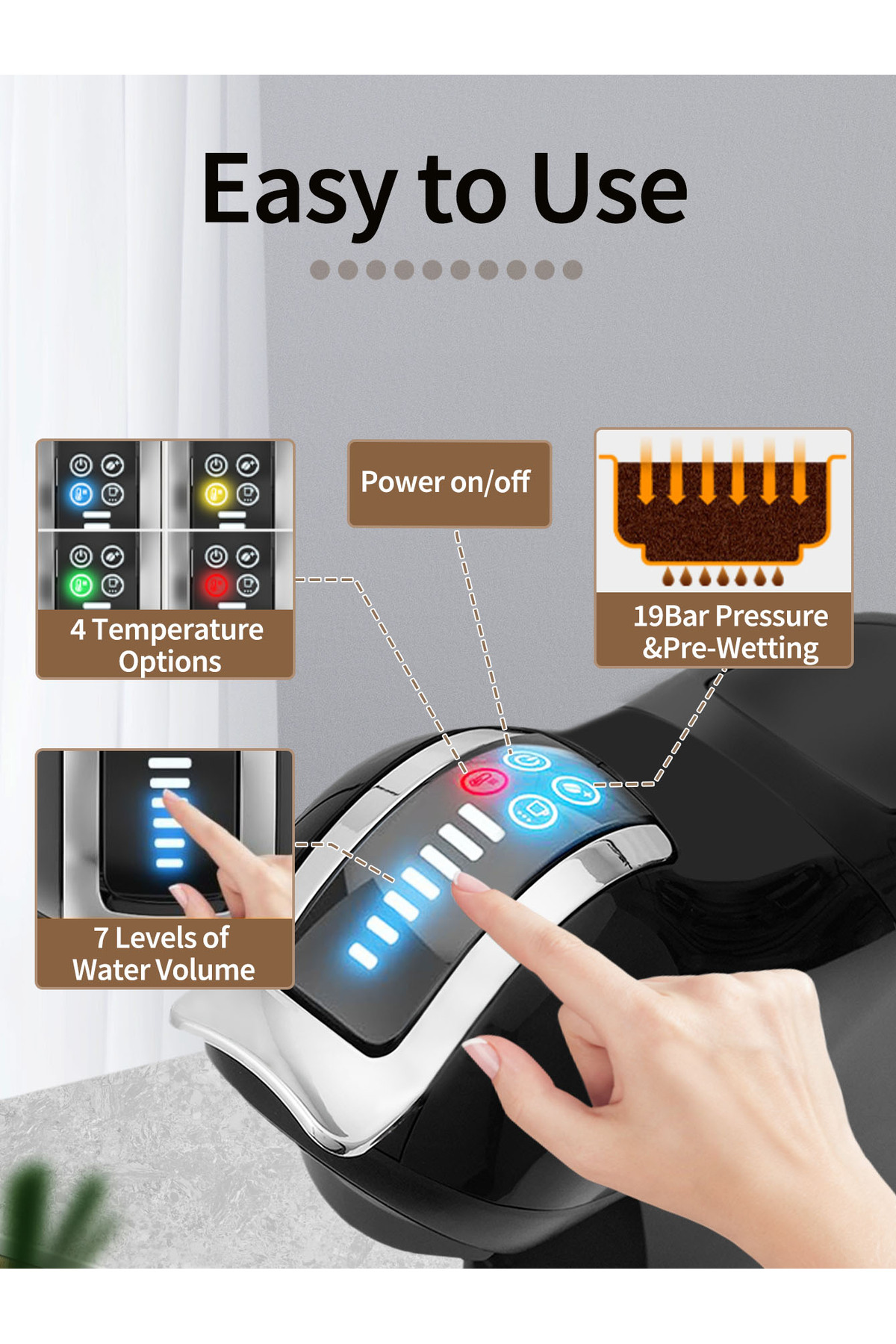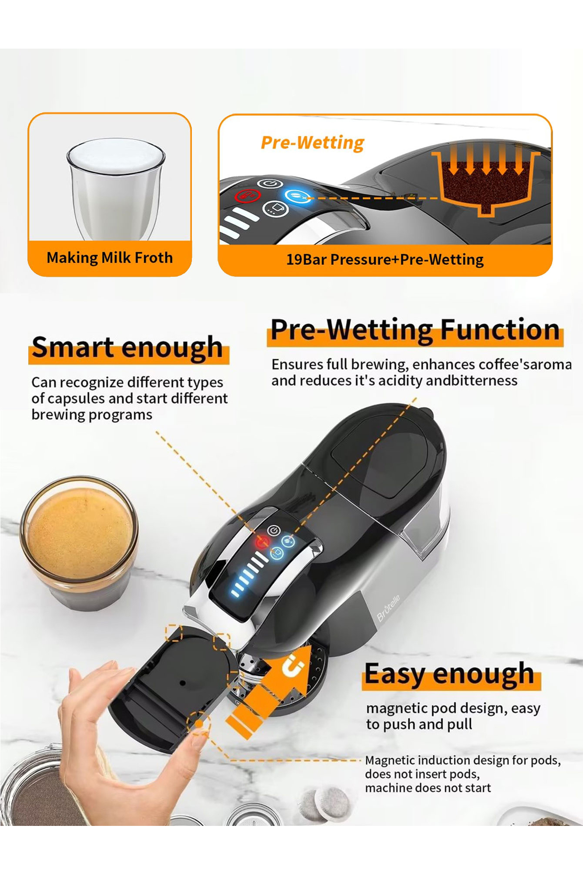 ماكينة قهوة بالكبسولات 4 في 1، ماكينة إسبريسو، ضغط 19 بار، ماكينة تحضير القهوة الباردة والساخنة بالك